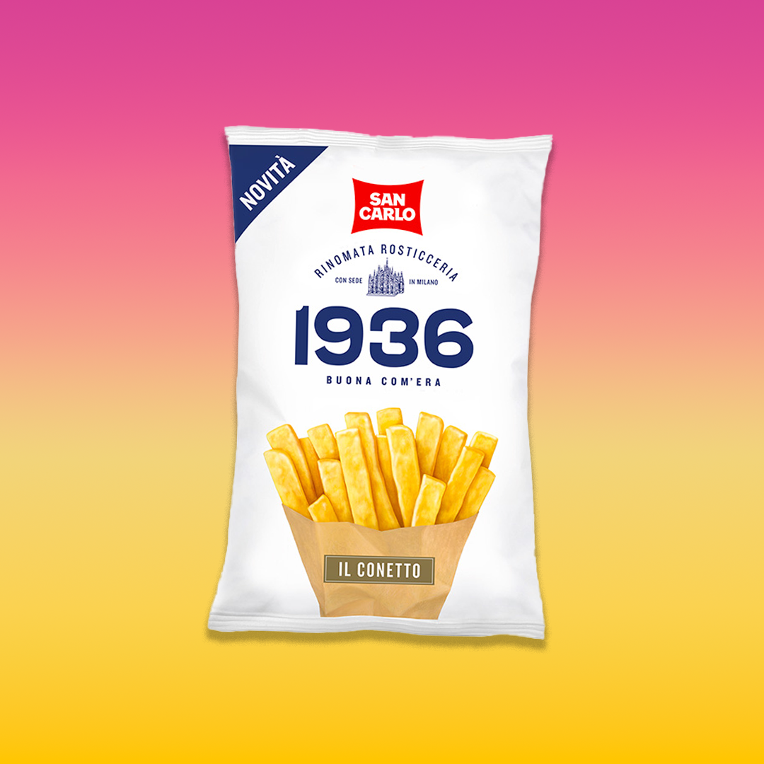 Inspired by the beloved 1936 recipe, Il Conetto is a perfectly crispy, cone-shaped chip crafted from the finest potatoes. Washed, peeled, and sliced thin, each chip is made with care and tradition, just like in the early days of San Carlo’s famous Milanese rosticceria.